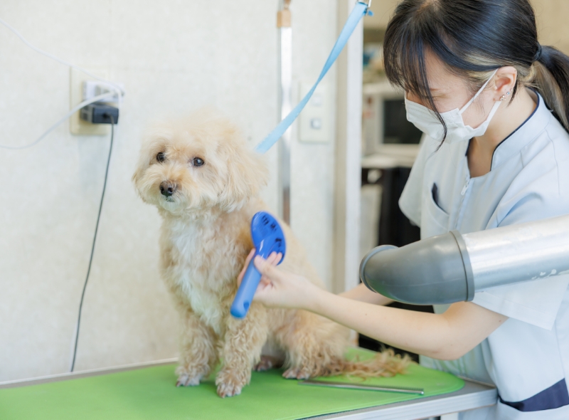 病気の治療だけでなく、日々の健康を守るためのケアや予防にも力を入れています。皮膚や被毛の状態に応じたトリミングやスキンケアのご提案も可能です。